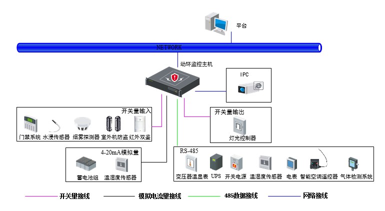 ●最新的485協(xié)議動(dòng)態(tài)庫,業(yè)界領(lǐng)先。設(shè)備接入方式支持:UPS、開關(guān)電源、交流電表、溫度濕度傳感器、氣體檢測系統(tǒng)、空調(diào)控制器、變壓器溫顯表、蓄電池組、門禁控制器、熱交換設(shè)備、位置服務(wù)模塊、發(fā)電機(jī)組、低壓配電設(shè)備、新能源供電系統(tǒng)、鐵塔UPS設(shè)備、直流電表、分路計(jì)量設(shè)備、鍵盤。