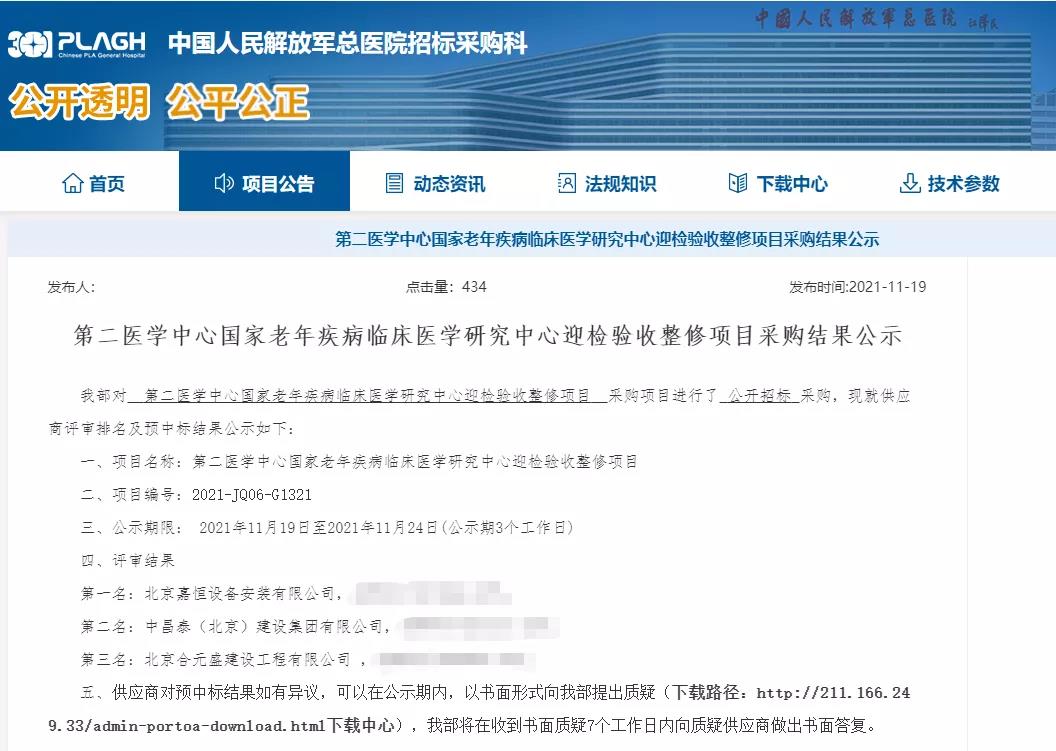 【嘉恒業(yè)績】恭喜北京嘉恒中標301中國人民解放軍總醫(yī)院第二醫(yī)學中心國家老年疾病臨床醫(yī)學
