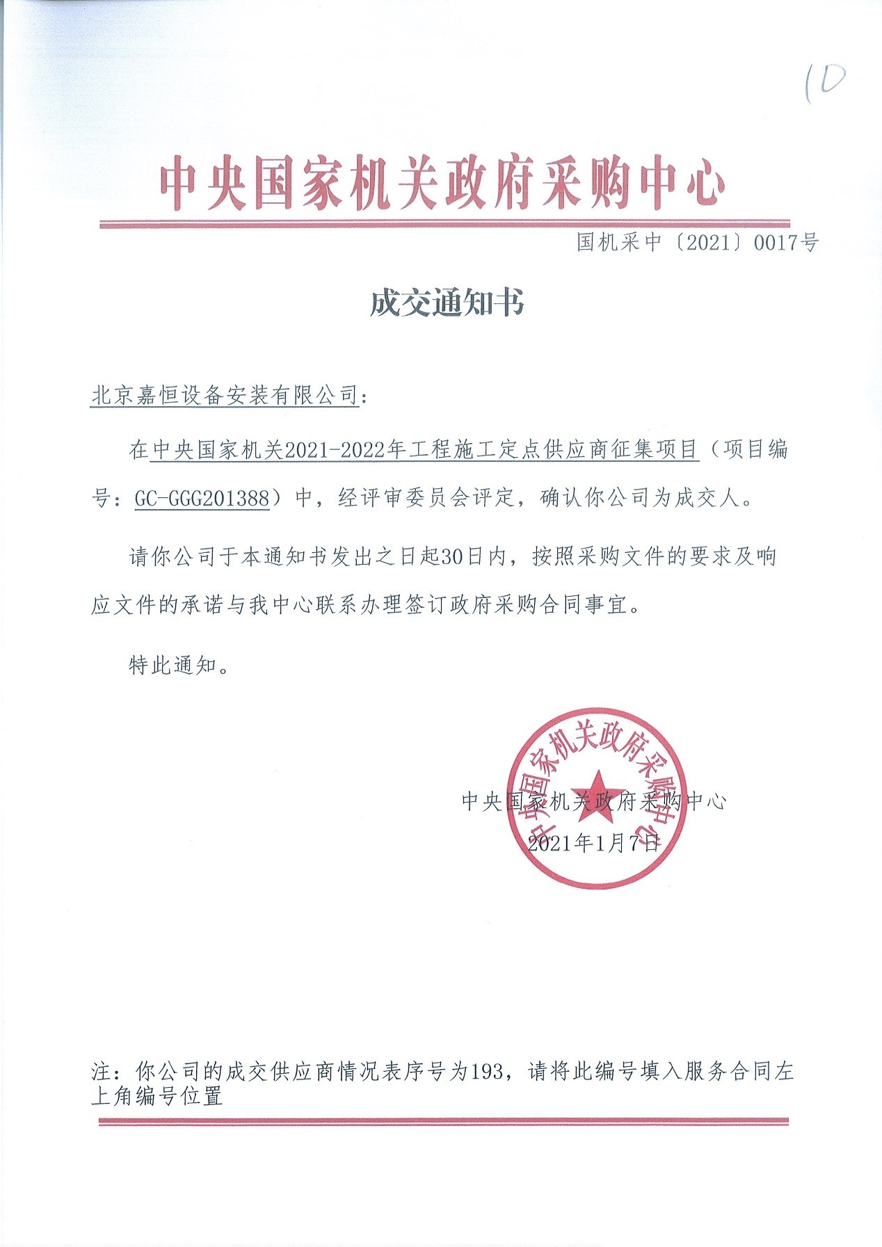 中央國(guó)家機(jī)關(guān)政府采購(gòu)中心成交通知書(shū)