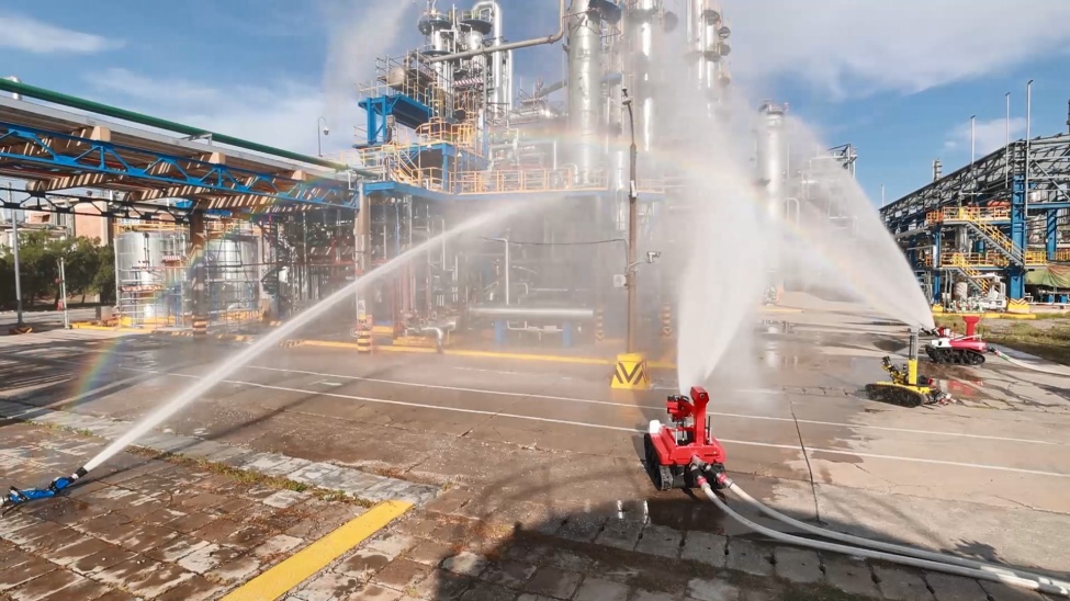 演練模擬乙烯生產(chǎn)裝置分離區(qū)汽化器封頭因墊片老化,造成乙烯泄漏爆炸,有人員受傷被困。伴隨乙烯泄漏量增多,氣體摩擦產(chǎn)生靜電,引發(fā)裝置區(qū)二次爆炸,拋射的碎片造成周邊三處裝置被擊中破壞。北京市消防救援總隊調(diào)派97輛消防車、30臺機(jī)器人、15架無人機(jī)以及