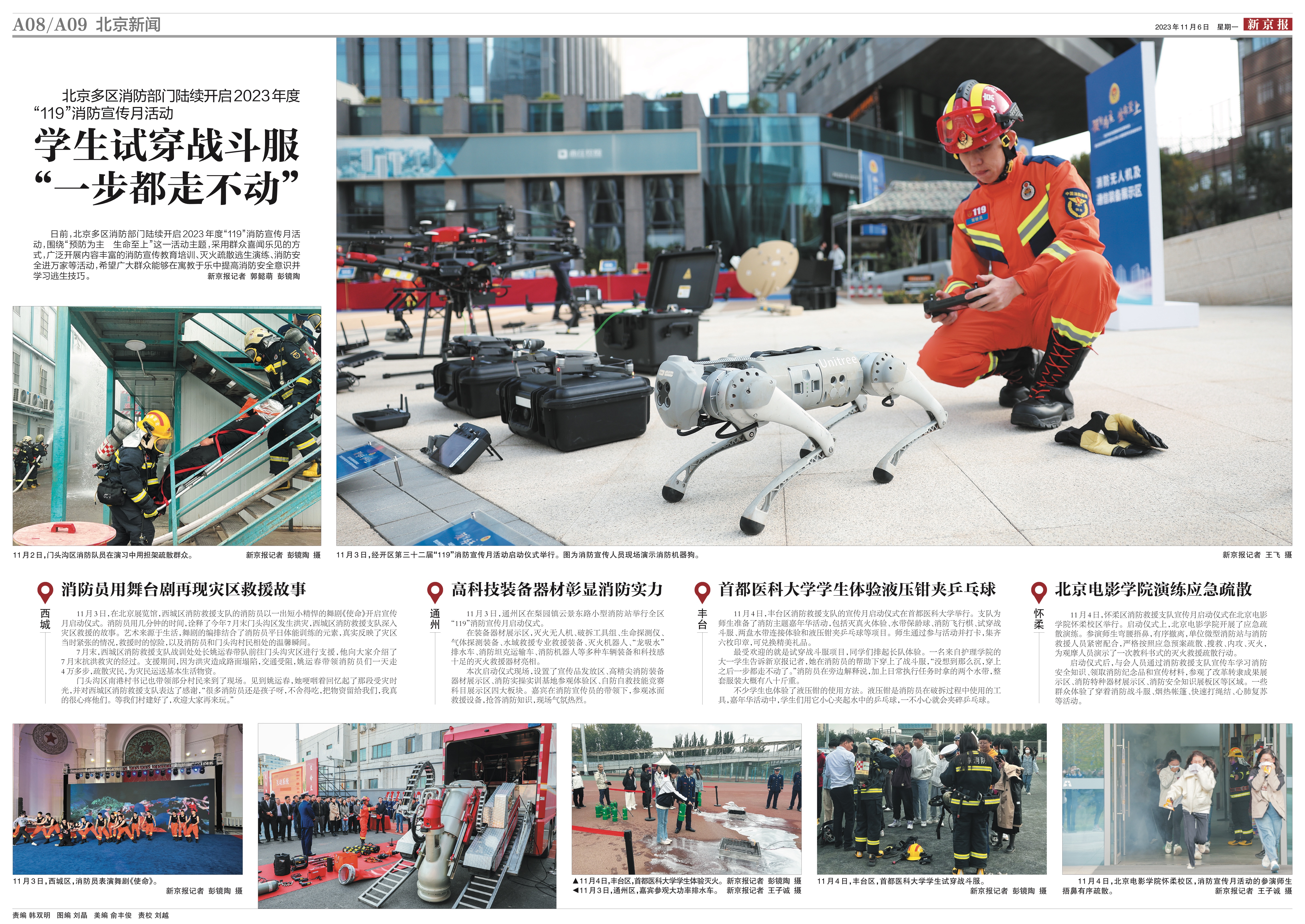 11月4日,北京市懷柔區(qū)消防救援支隊(duì)在北京電影學(xué)院懷柔校區(qū)舉行2023年“119”消防宣傳月活動(dòng)啟動(dòng)儀式。