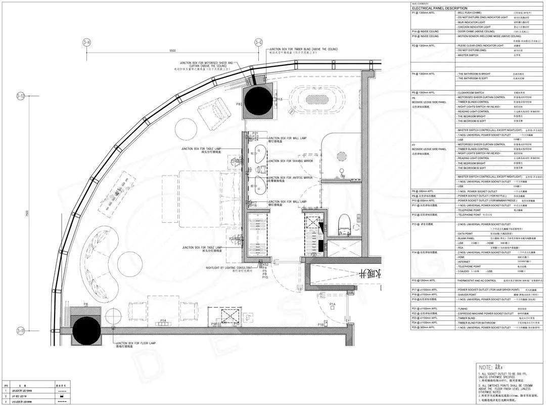 1、所有點(diǎn)位要標(biāo)注說(shuō)明、定位尺寸標(biāo)注、高度標(biāo)注