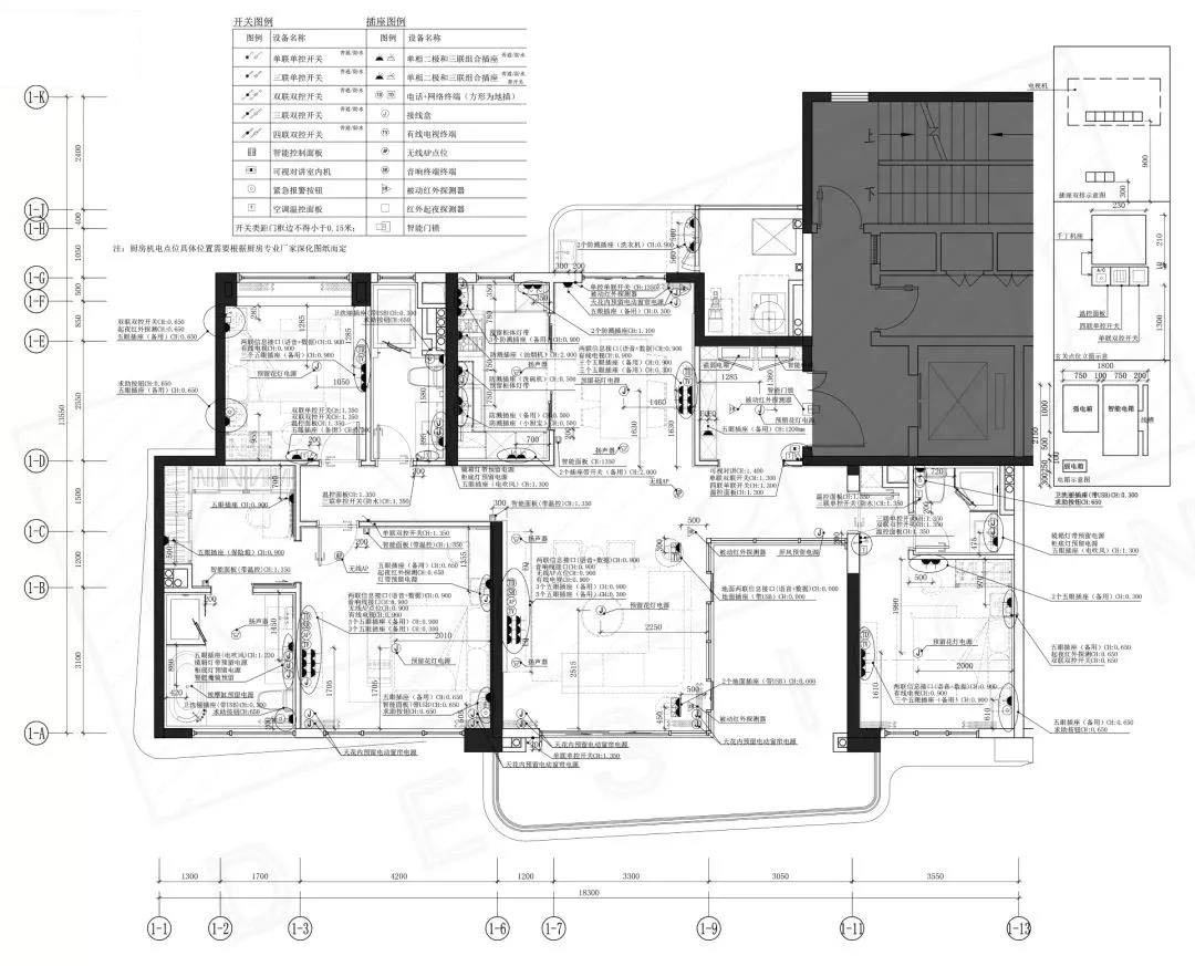 就像綜合天花圖的紙繪,作為設(shè)計(jì)方,在設(shè)計(jì)范圍內(nèi),同各專業(yè)協(xié)調(diào)綜合,以達(dá)到優(yōu)化圖紙的作用。所以作為裝飾設(shè)計(jì)方,對(duì)機(jī)電點(diǎn)位圖最需要了解的是電氣部分,而電氣工程分為強(qiáng)電、弱電、消防電氣。