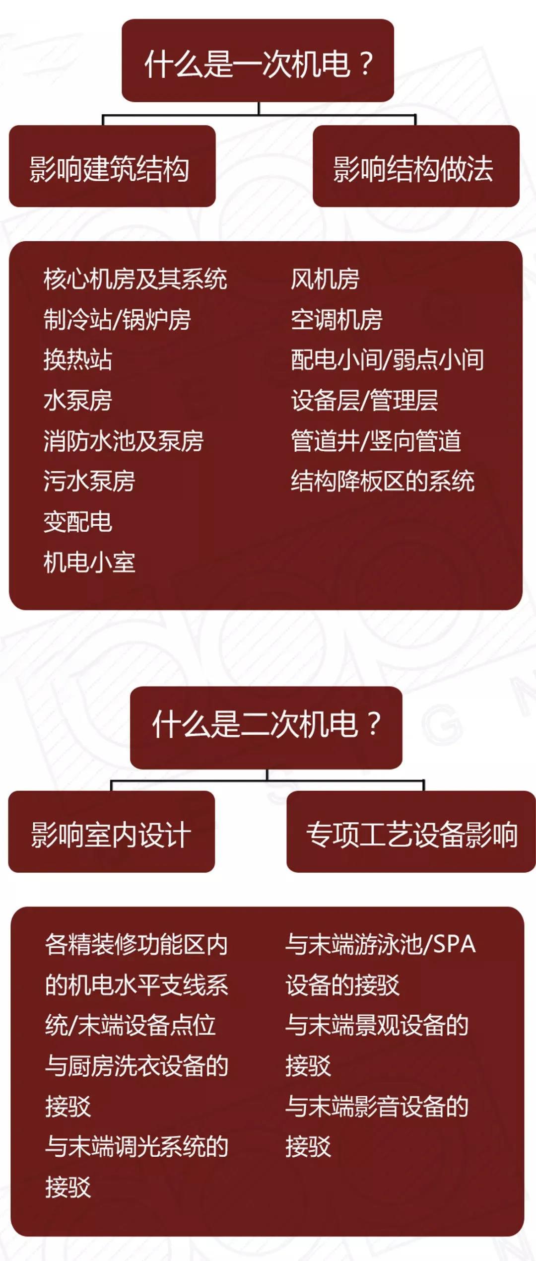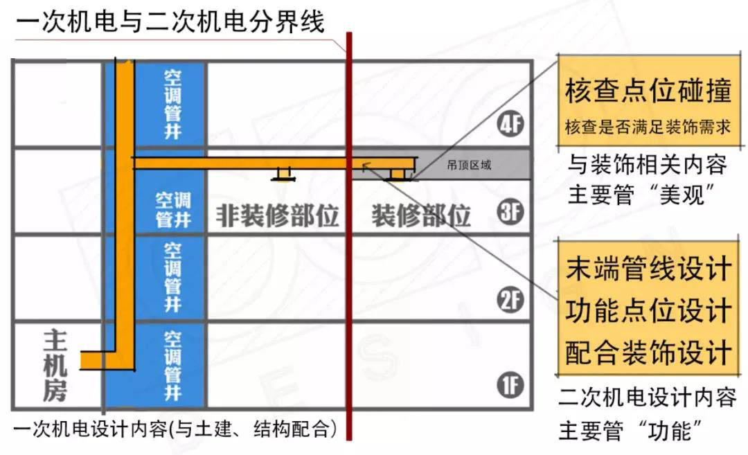 所以,在酒店項(xiàng)目中會(huì)將機(jī)電部分細(xì)分為一次機(jī)電和二次機(jī)電,目的是縮短前期機(jī)電施工周期,加速整體項(xiàng)目的建造效率,進(jìn)而降低項(xiàng)目的成本。