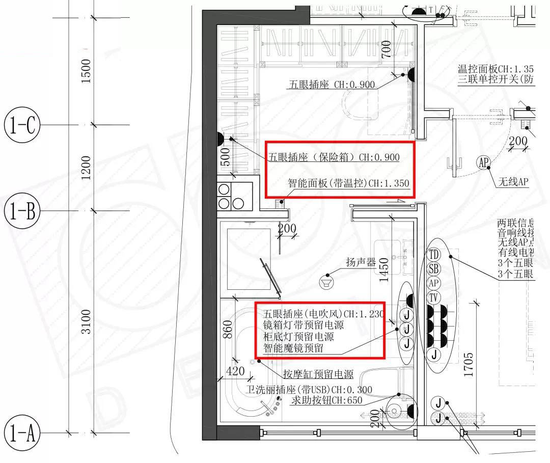 前面大家知道了裝飾設(shè)計(jì)方是不具備出具電氣圖紙資質(zhì)的,所以在將機(jī)電圖紙點(diǎn)位疊加成裝飾施工的機(jī)電點(diǎn)位圖時(shí),要反復(fù)核查設(shè)備表、標(biāo)注說(shuō)明、尺寸定位、高度標(biāo)注是否明確等。