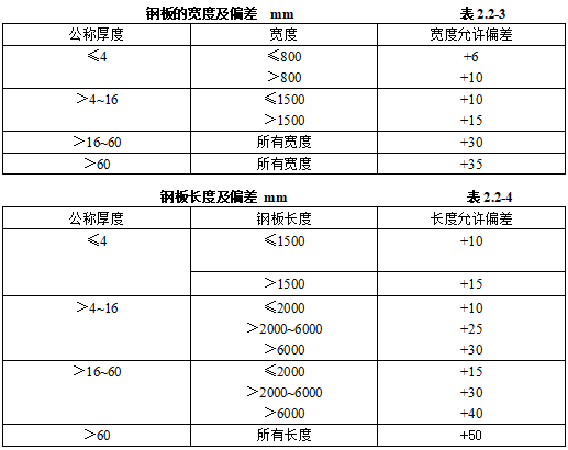 注:鋼板的寬度和長(zhǎng)度的允許偏差為:寬度≤800,+6mm;長(zhǎng)度≤1500,+10mm;寬度>800,+10mm;長(zhǎng)度>1500,+15mm。
