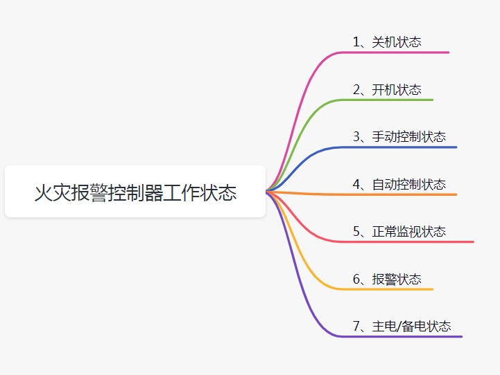 火災(zāi)報(bào)警控制器工作狀態(tài)的判斷:從監(jiān)視與控制的不同功能角度區(qū)分,火災(zāi)報(bào)警控制器主要有關(guān)機(jī)狀態(tài)/開機(jī)工作狀態(tài)、手動(dòng)控制狀態(tài)/自動(dòng)控制狀態(tài)、正常監(jiān)視狀態(tài)/報(bào)警狀態(tài)等工作狀態(tài)。