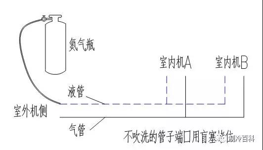 注意:管道試壓時不要連接室外機(jī),以免閥體損壞。