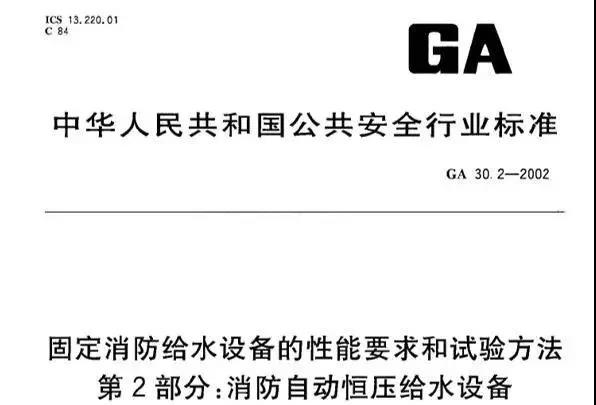 《GA30.2-2002:固定消防給水設(shè)備的性能要求和試驗(yàn)方法》