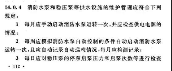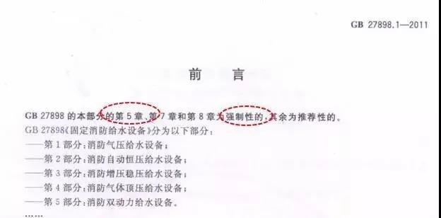 在各個(gè)部分標(biāo)準(zhǔn)的前言中,均對(duì)該國(guó)標(biāo)的強(qiáng)制執(zhí)行與推薦執(zhí)行部分進(jìn)行了劃分,在各個(gè)國(guó)標(biāo)第5章內(nèi)容描述了對(duì)固定給水設(shè)備的控制要求,屬于強(qiáng)制執(zhí)行部分。其中均提到的對(duì)消防泵巡檢的要求。下面截取了標(biāo)準(zhǔn)中的描述: