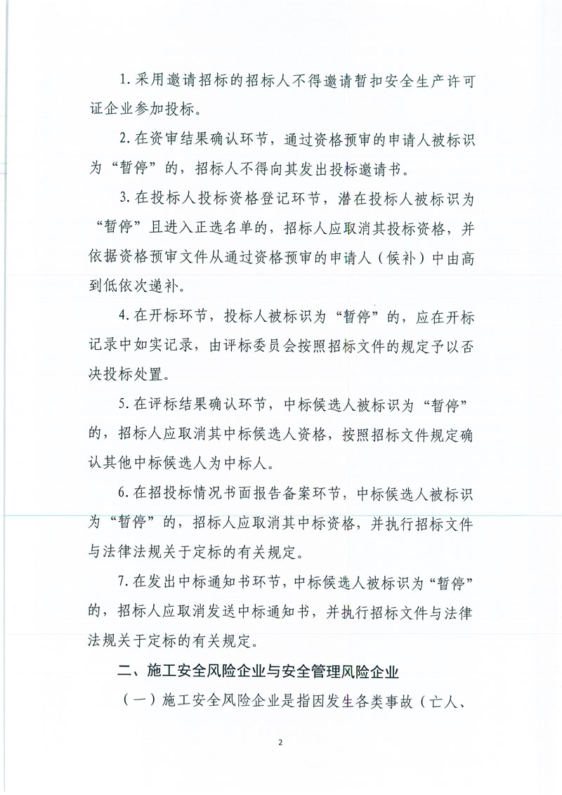 當(dāng)前位置: 主頁(yè) > 新聞中心 > 行業(yè)動(dòng)態(tài) >我市房屋建筑與市政基礎(chǔ)設(shè)施工程招投標(biāo)活動(dòng)中暫扣安全生產(chǎn)許可證企業(yè)、施工安全風(fēng)險(xiǎn)企業(yè)