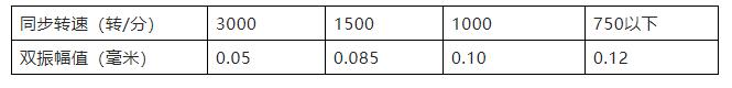 (3)每臺(tái)電機(jī)空載試運(yùn)行2小時(shí)以上,并記錄電機(jī)的空載電流,空載電流三相平衡,誤差不得超過(guò)規(guī)定值。電機(jī)旋轉(zhuǎn)方向正確,無(wú)雜音;電機(jī)溫度不得超過(guò)熱現(xiàn)象,其溫升不得超過(guò)90℃,軸承溫升不應(yīng)超過(guò)60℃,電機(jī)的振動(dòng)(雙振幅值)應(yīng)不大于表中規(guī)定。