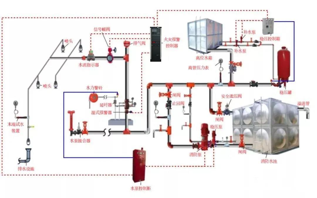 3、噴頭動(dòng)作后或末端泄放裝置打開(kāi),聯(lián)動(dòng)泵后管道前端無(wú)水